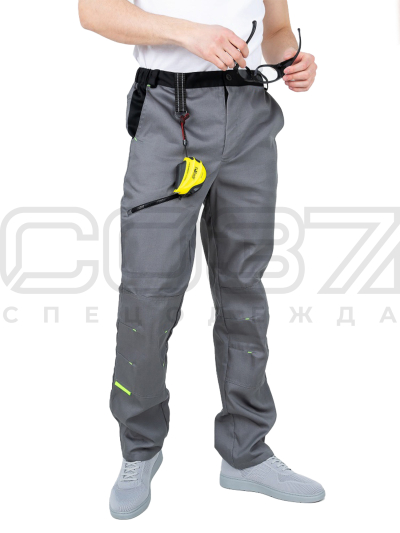 Брюки рабочие "Экстра" цв.серый/чёрный/лимон тк.смесовая в Мариуполе