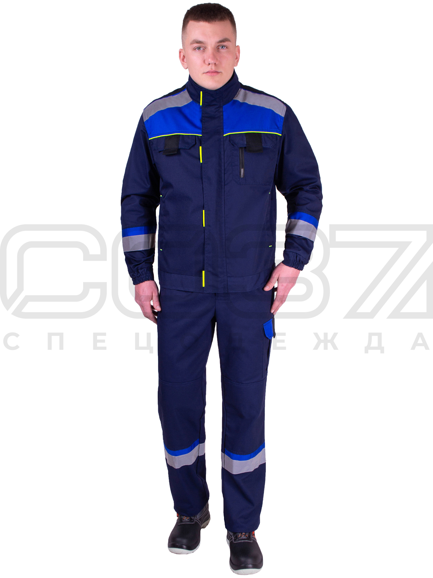 Костюм рабочий "Манчестер" с СОП цв.т.синий/василёк/чёрн (куртка+пк) в Мариуполе