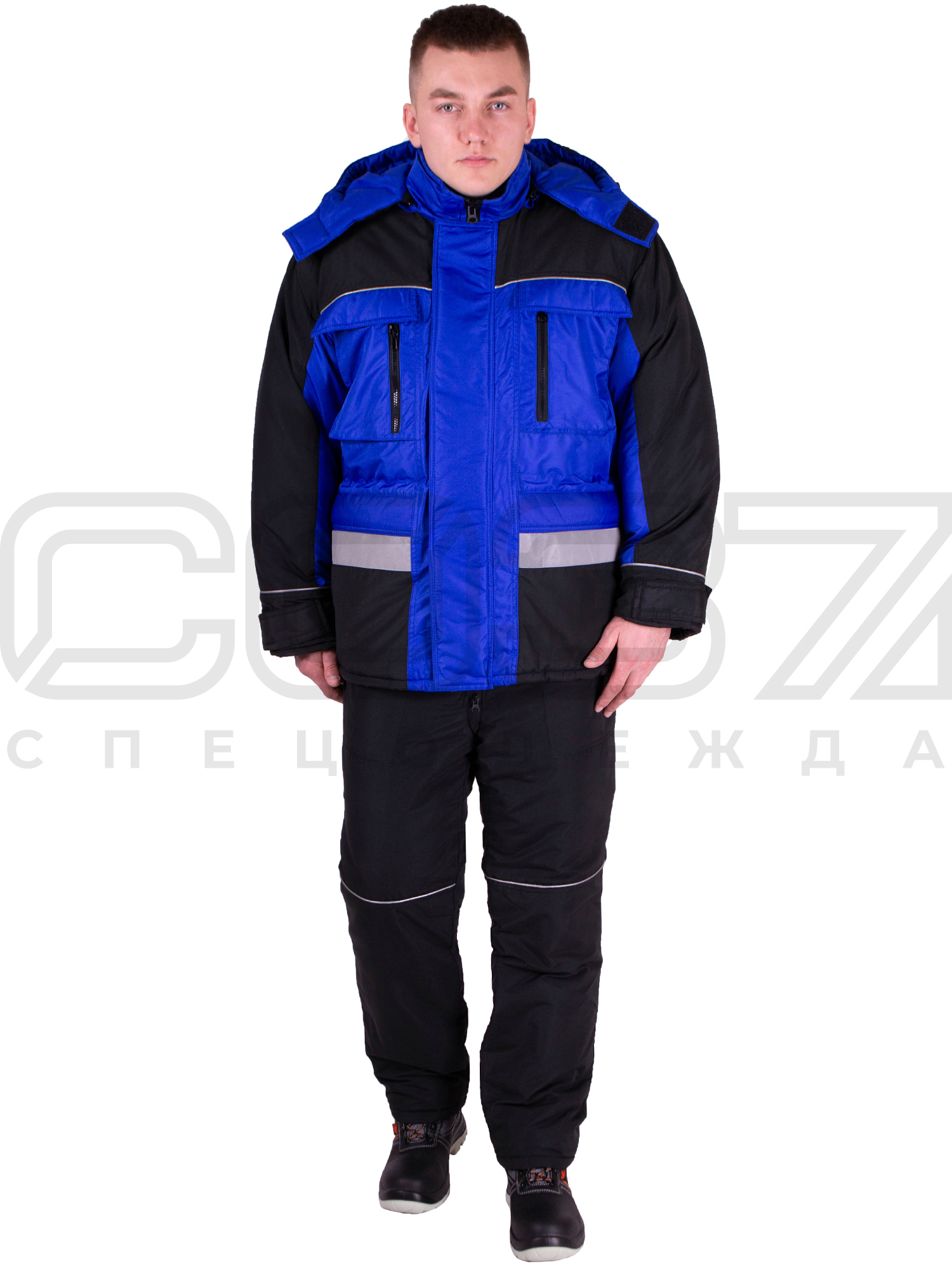 Куртка рабочая зимняя "Импульс" с СОП цв.василёк/чёрный IV и Особый кл.пояс в Мариуполе